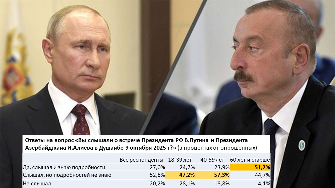 😣 О встрече Путина и Алиева хорошо были информированы 27% респондентов (они знали подробности) и поверхностно - 52,8% (они не знали подробностей). лучше всех были проинформированы пенсионеры - среди них 51,2% знали подробности этой встречи.